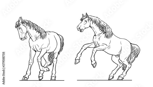 Horses Drawing Wild Horses Playing Running And Fighting Horse Outline Wall Mural Lunstream