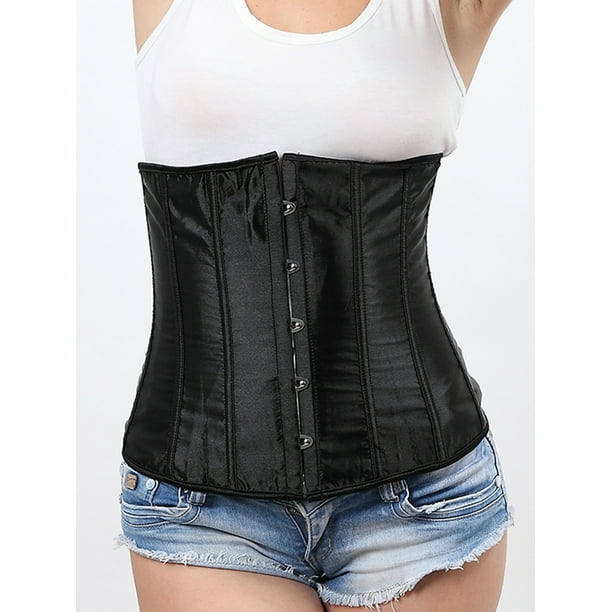 Shcke Women S Vintage Satin Corset Bustier Top Lace Up Boned Underbust Corset Waist Cincher Walmart Com