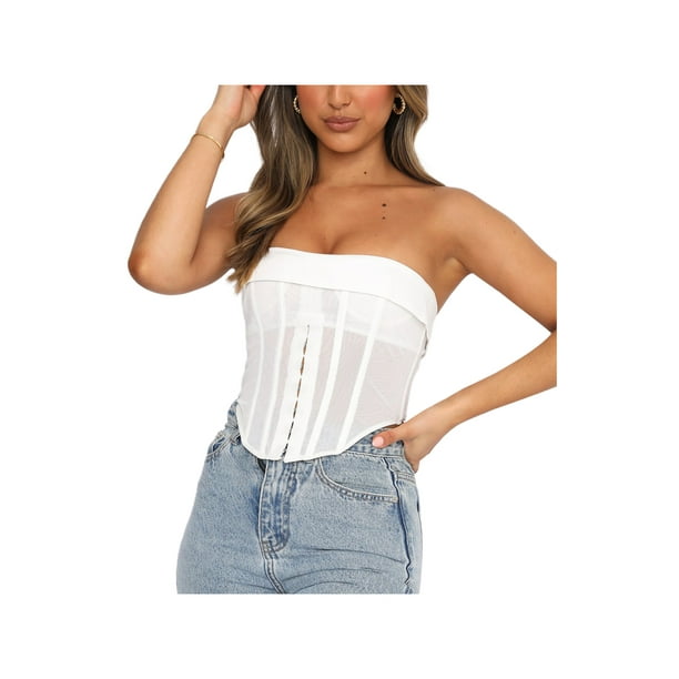 Women S Sexy Strapless Mesh Bustier Corsets Sleeveless Crop Tube Top Fashion Tank Camisole Tops Walmart Com