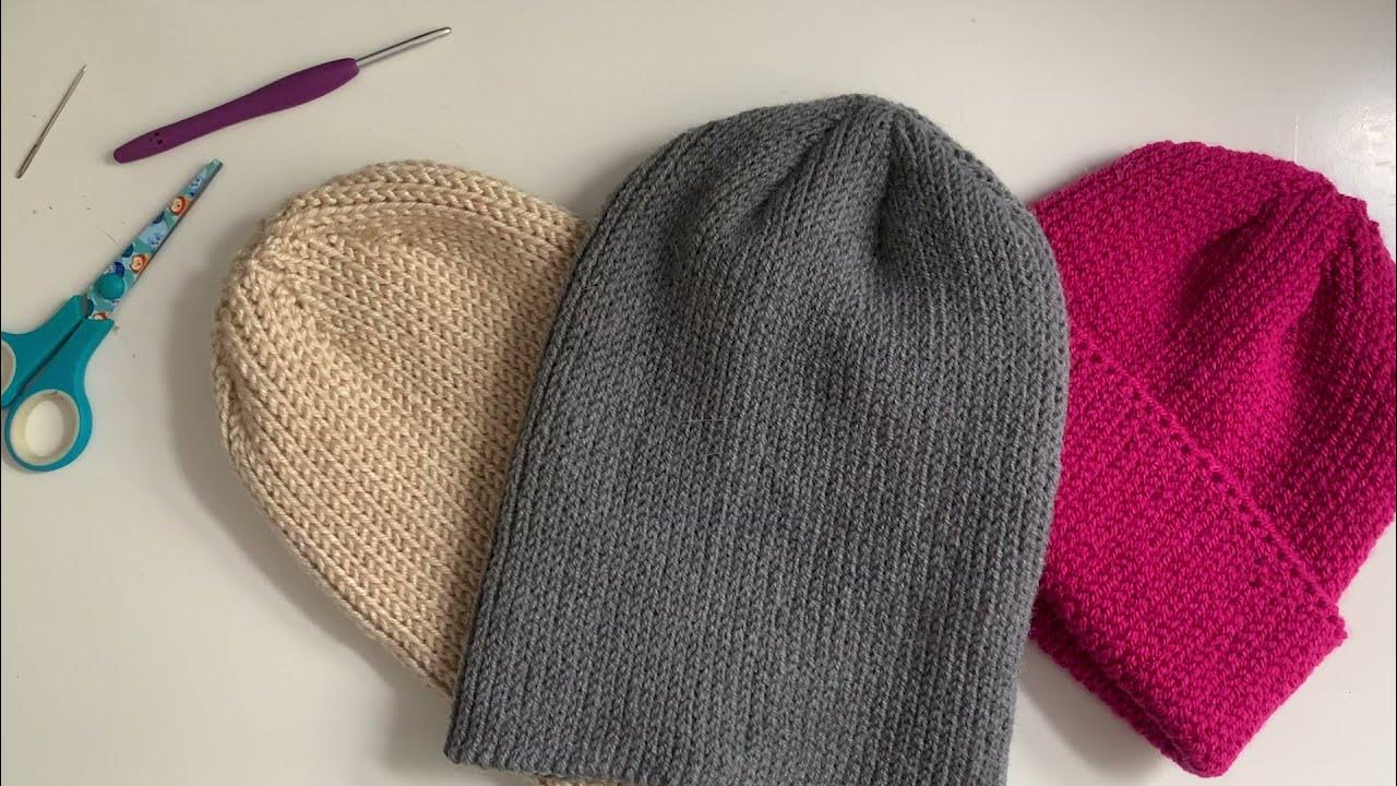 Free Pdf Pattern Banded Knit Beanies For Men Women Children And Babies